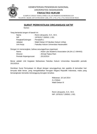 Surat keterangan aktif merupakan surat resmi yang dikeluarkan oleh.