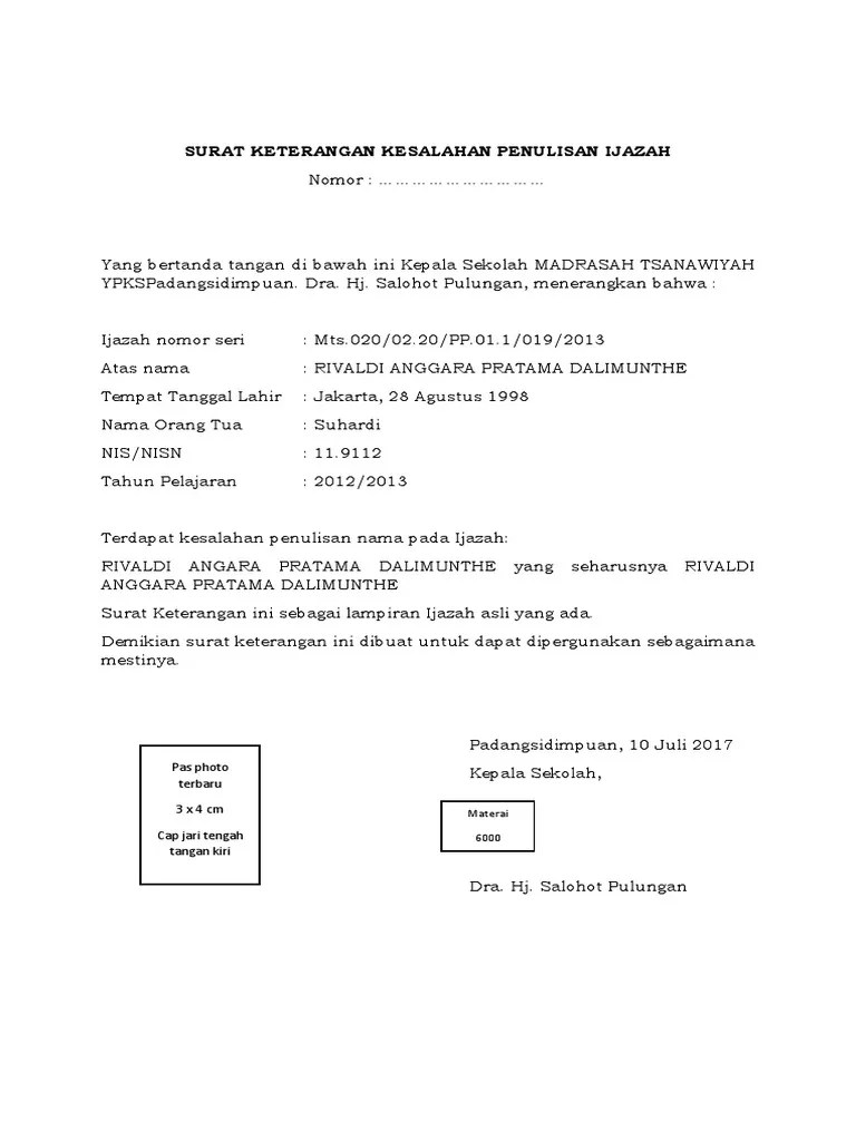 Surat Keterangan Ijazah Salah Nama : Ijazah S1 Oknum Caleg Pan Dapil Iii Lampura Berinisial As Dipertanyakan Keabsahannya Lampungvisual Com : 07.09.2016 · surat diatas adalah surat tanggapan atas surat lamaran kerja yang dikirim seseorang sebelumnya, besar kemungkinan diterima jika kita sudah mendapat surat panggilan kerja.. Demikian surat lamaran pekerjaan ini, besar harapan saya untuk bisa diterima menjadi pegawai di lingkungan pt. Demikian surat permohonan praktek kerja lapangan ini saya ajukan dengan sebenarnya. Surat tersebut berisi peryataan bahwa nama ayah yang benar adalah sesuai akta. Apabila pekerjaan anda salah satunya adalah surat menyurat ataupun yang sebagai bahan tugas sekolah. Daftar nama peserta wisuda yang termasuk dalam pengiriman dokumen ijazah dengan pos :